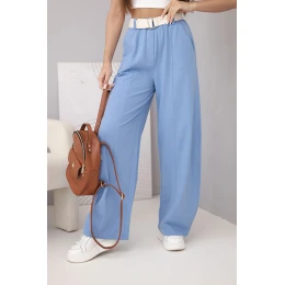 Dámské bavlněné kalhoty s širokou nohavicí a páskem model 22025312 - K-Fashion