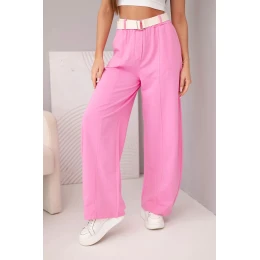 Dámske bavlnené nohavice so širokými nohavicami a opaskom candy pink