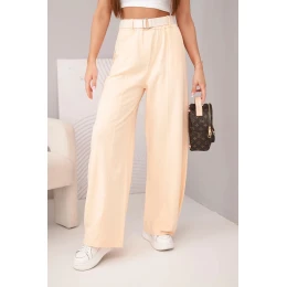 Dámske bavlnené nohavice so širokými nohavicami a opaskom marhuľová