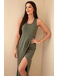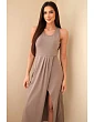Dámske bavlnené midi šaty bez rukávov s riasením tmavoružové