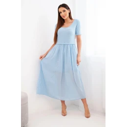 Dámské bavlněné midi šaty s krátkým rukávem a rozšířeným spodkem modrá