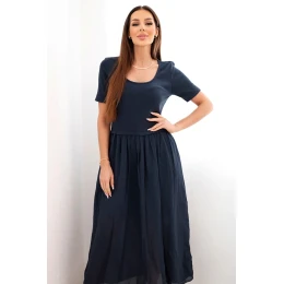 Dámske bavlnené midi šaty s krátkymi rukávmi a rozšíreným spodným dielom tmavomodré