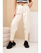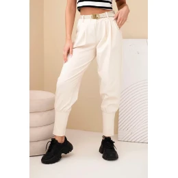 Dámske bavlnené nohavice s vysokým pásom a opaskom béžovej farby