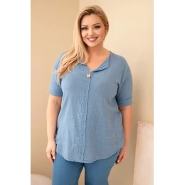 Dámske bavlnené Plus veľkosť blúzka s výstrihom na gombíky Denim