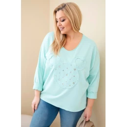 Dodajte svojmu každodennému štýlu trochu lesku! Dámska blúzka Plus Size s kamienkami a efektnou aplikáciou na prednej strane je ideálnou ponukou pre ženy, ktoré chcú spojiť pohodlie s módnym vzhľadom. Výstrih do V krásne zoštíhľuje krk a mierne nadrozmerný strih sa dokonale prispôsobí postave a zaručuje voľnosť pohybu.