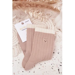 Dámské bavlněné ponožky s malým medvídkem béžové