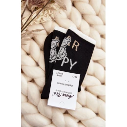 Skarpety Damskie Bawełniane Z Napisem I Misiem Czarne
