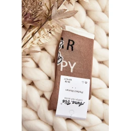 Dámské bavlněné ponožky s nápisem a medvídkem světle hnědé