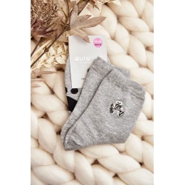 Bawełniane Skarpety Damskie Z Naszywką Miś Szare