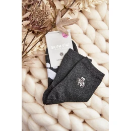 Bawełniane Skarpety Damskie Z Naszywką Miś Ciemnoszare