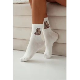 Dámské bavlněné ponožky Sedící kapibara ecru