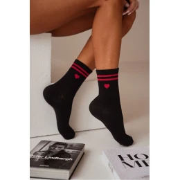 Dámské bavlněné ponožky srdce s pruhy černé