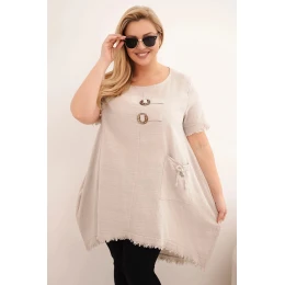 • Dámské bavlněné šaty Plus Size s delším zadním dílem a kapsou béžová