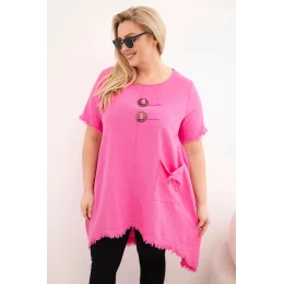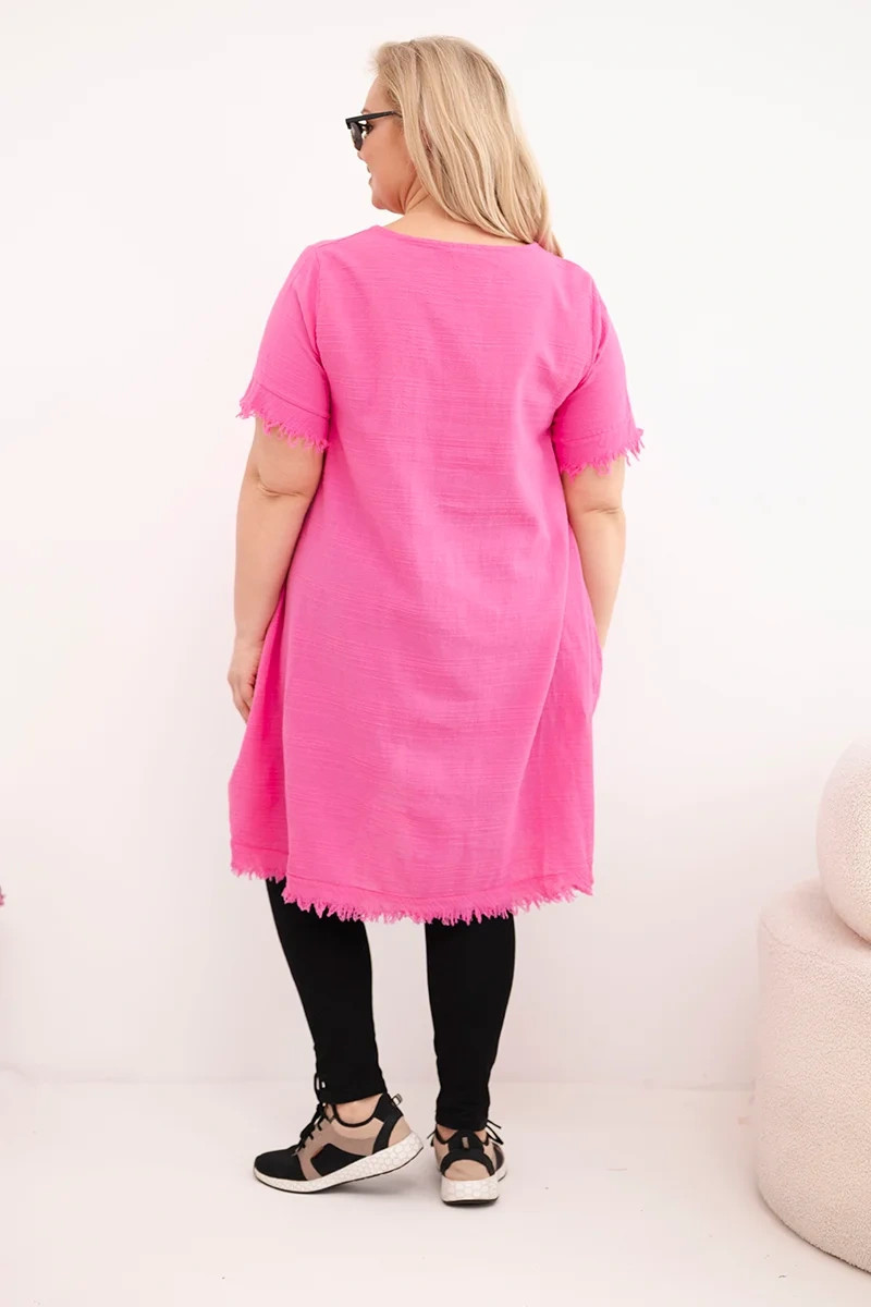 Dámske bavlnené šaty nadmernej veľkosti s dlhším chrbtom a vreckom ružovej farby