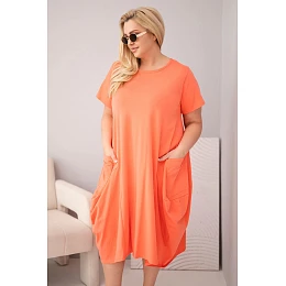 Tieto moderné plus size dámske šaty s voľným oversize strihom sú ideálnou voľbou pre ženy, ktoré si v každodennom stylingu cenia pohodlie a módu. Minimalistický dizajn v kombinácii s funkčnými detailmi zaručuje, že tento model sa bude dobre hodiť na bežné nosenie aj neformálne príležitosti. Šaty majú krátke rukávy a klasický okrúhly výstrih, čo im dodáva univerzálny charakter.