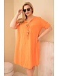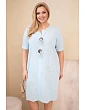 Voľný strih jemne prilieha k postave, netlačí a zaručuje úplnú voľnosť pohybu. Model má rukávy s dĺžkou po lakte a výstrih do V s ozdobnými viazankami a ozdobnými prvkami, ktoré celku dodávajú originálny charakter. Ide o dámske šaty nadrozmernej veľkosti, ktoré dokonale zakryjú nedokonalosti a zvýraznia prednosti postavy.