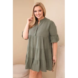 1. Dámské bavlněné šaty plus size s volánky khaki