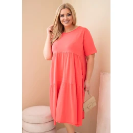 Pohodlné a štýlové dámske bavlnené šaty vo veľkosti Plus Size sú skvelou voľbou pre ženy, ktoré si cenia pohodlie a módny, ležérny štýl. Voľný model s vloženou časťou pod prsiami a jemným volánom v spodnej časti sa krásne prispôsobí postave a zabezpečí voľnosť pohybu.