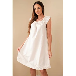 Tieto ľahké a mimoriadne pohodlné dámske šaty z prírodnej bavlny sú ideálnou voľbou na teplejšie dni. Model vyniká jemným riaseným výstrihom, ktorý celku dodáva jemný a ženský charakter. Krátke voľné rukávy v tvare volánu dodávajú šatám ľahkosť a zabezpečujú, že šaty vyzerajú mimoriadne štýlovo a uvoľnene.