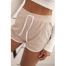 Dámské bavlněné šortky s elastickým pasem a model 21772744 lemem béžové - K-Fashion