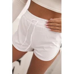 Dámske bavlnené šortky s elastickým pásom a športovým lemom biele