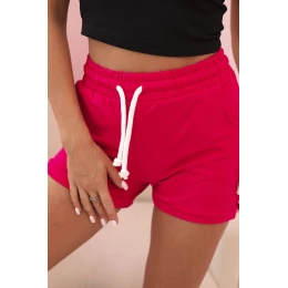 Dámské bavlněné šortky s gumou a šněrováním v pase fuchsie