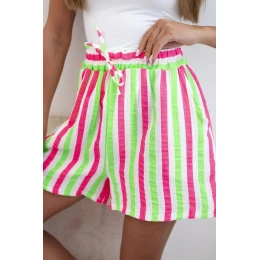 Dámské bavlněné šortky s proužky zelený neon