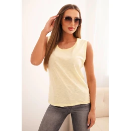 Dámske bavlnené tričko bez rukávov klasického strihu v žltej farbe