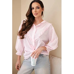 Štýlová dámska bavlnená košeľa je výnimočnou ponukou pre ženy, ktoré ocenia spojenie pohodlia s romantickým dizajnom. Model je vyrobený zo 100 % prírodnej bavlny, je ľahký, priedušný a príjemný na nosenie, takže je ideálny na jarno-letné obdobie.