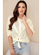 Dámske bavlnené tričko s čipkou a viazankami žlté