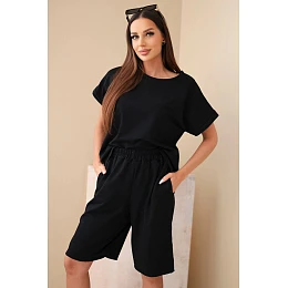 Dámske bavlnené tričko s krátkym rukávom a šortky s elastickým pásom čierne