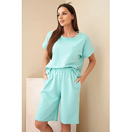 Dámske bavlnené tričko s krátkym rukávom a šortky s elastickým pásom mint