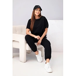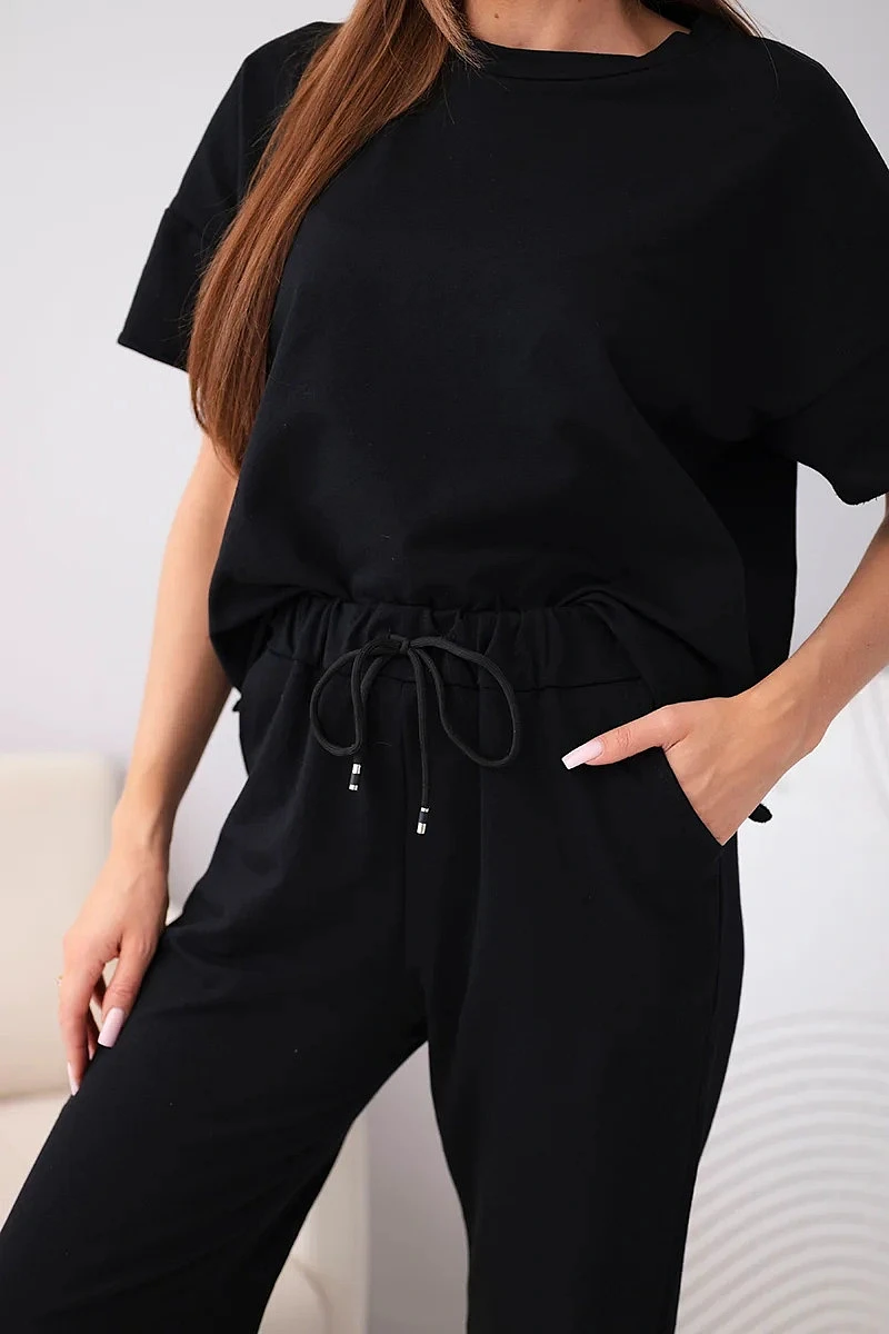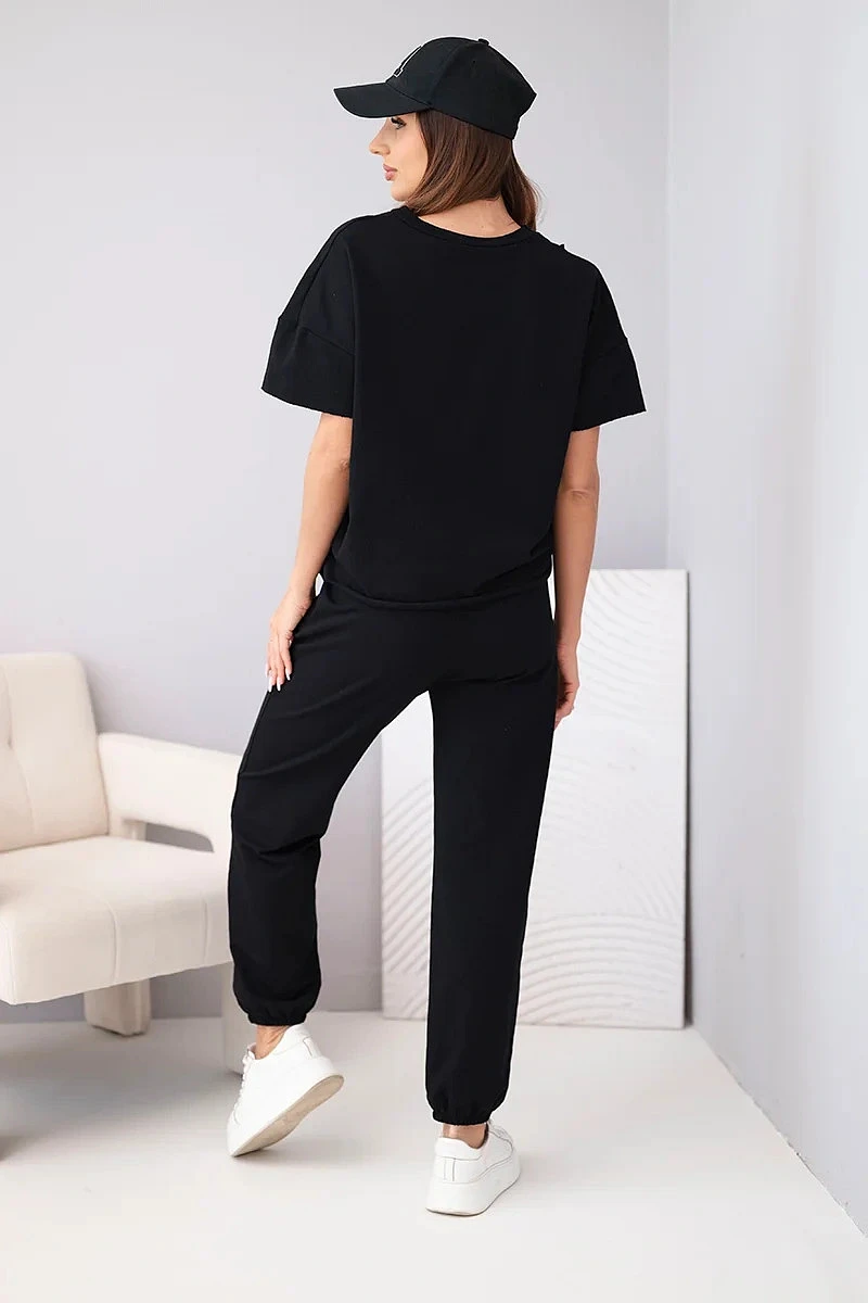 Dámske bavlnené tričko s krátkym rukávom a tepláky čierne