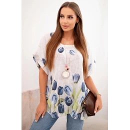 Hledáte lehkou, vzdušnou halenku ideální na teplejší dny? Tato dámská halenka s krátkým rukávem je kombinací přirozeného pohodlí a výjimečného stylu. Je vyrobena ze 100% bavlny a zaujme nejen příjemným materiálem, ale i nádherným vzorem tulipánů ve spodní části. Volný střih skvěle padne na postavu a zajišťuje plnou volnost pohybu bez ohledu na příležitost. Je to skvělá volba jak na každodenní nošení, tak i na setkání s přáteli. V kombinaci s oblíbenými džínami nebo sukní vytvoříte outfit, který upoutá pozornost. Květinový motiv jí dodává svěžest a ženský půvab, zatímco klasický lodičkový výstřih a krátké rukávy ji činí velmi pohodlnou na nošení. Velikost je univerzální a bude vyhovovat dámám velikosti S, M nebo L.