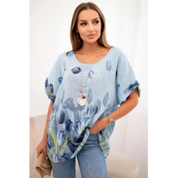 Dámske bavlnené tričko s kvetinovým vzorom modré