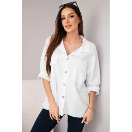 Veľké našité vrecká na hrudi a neopracovaný lem dodávajú košeli módny, mierne drsný charakter. Môžete ju nosiť ako ľahkú bundu alebo klasickú košeľu - hodí sa k džínsom, šortkám alebo sukniam. Skvelá voľba na každý deň, do práce alebo na výlet.