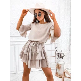 Pridanie recenzie k Bavlnené šaty s volánmi béžovej farby (8292)
