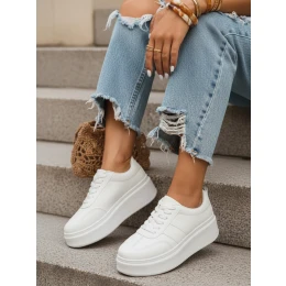 Tieto dámske vyvýšené tenisky kombinujú športový štýl s každodenným pohodlím. Hrubá platforma stabilizuje váš krok a pridáva niekoľko centimetrov výšky bez toho, aby zaťažovala chodidlo. Šnurovanie uľahčuje prispôsobenie sa nártu, zatiaľ čo mäkký zvršok podporuje pohodlie pri dlhších prechádzkach.
