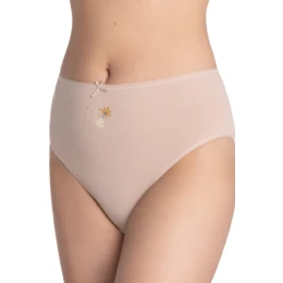 Figi damskie marki LAMA to połączenie komfortu, klasycznego fasonu i subtelnej estetyki. Model o pełniejszym kroju delikatnie dopasowuje się do sylwetki, zapewniając wygodę przez cały dzień. Wykonane z wysokiej jakości, miękkiej i oddychającej bawełny, są przyjazne dla skóry i idealne do codziennego noszenia.