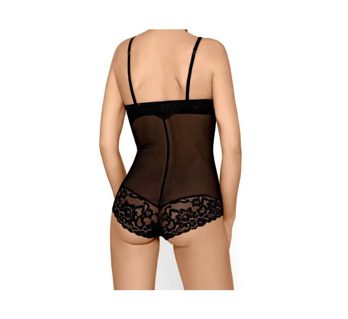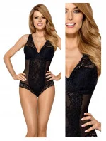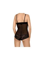Dámske body s odnímateľnými vypchávkami. Vystužené košíčky sú pokryté jemnou čipkou, ktorá tvorí aj stred prednej časti a okraje nohavičiek. Boky a zadná časť sú vyrobené z jemnej elastickej sieťoviny. Dámske body Vystužené košíčky Vyberateľné vypchávky é kostice Klasický strih nohavičkovej časti Vystužený bavlnený klin Zapínanie v rozkroku so záplatami: