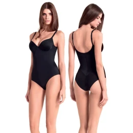 Elegantní dámské body od značky Lormar. Dokonalý střih, který se jemně přizpůsobí Vaší postavě a vykreslí křivky Vašeho těla. Dámské body má mírně stahující účinek díky příjemnému mikrovláknu a je velice příjemné na nošení. Košíčky jsou lisované, mírně vyztužené flexibilní pěnovou výztuží a díky kosticím drží správný tvar. Zadní díl kalhotek je střižen laserem, takže se nezařezává a působí neviditelně. Na zadní straně je podélný šev uprostřed a dva šikmé. Spodní část body se zapíná na tři háčky v jedné řadě a do vnitřního dílu je zapracován bavlněný klínek.