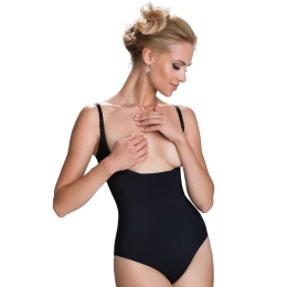 Eleganckie i funkcjonalne body damskie wykonane z wysokiej jakości mikrofibry to idealne połączenie komfortu, estetyki i modelowania sylwetki. Delikatny, a zarazem elastyczny materiał doskonale dopasowuje się do ciała, subtelnie korygując brzuch i pośladki, jednocześnie nie zakrywając biustu. Dzięki temu body świetnie sprawdzi się zarówno jako bielizna modelująca, jak i baza pod codzienne oraz wieczorowe stylizacje. Bezszwowa, laserowo cięta część majtkowa sprawia, że body nie odznacza się pod dopasowanymi sukienkami czy spodniami, zapewniając perfekcyjny wygląd w każdej sytuacji. Regulowane, wąskie ramiączka oraz zapięcie na haftki w kroku gwarantują wygodę i pełną swobodę noszenia przez cały dzień.