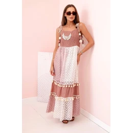 Tieto dámske šaty v boho štýle sú skvelou voľbou na teplé dni, keď chcete vyzerať žensky, ležérne a štýlovo. Sú vyrobené zo 100 % bavlny, čo zaručuje pohodlie a priedušnosť počas celého dňa. Vrchnú časť šiat zdobí výšivka v tvare krídla a ozdobné šnúrky s okrajmi na ramienkach, ktoré modelu dodávajú jedinečný charakter. Spodná časť z jemnej čipky s geometrickým vzorom, pretkaná volánmi s okrajmi, podčiarkuje ľahkosť a romantický štýl. Ideálna voľba na letné prechádzky, dovolenku alebo festivaly. Šaty vyzerajú skvele so sandálkami, espadrilkami alebo papučkami. Veľkosť je univerzálna a padne dámam s veľkosťou S, M alebo L.