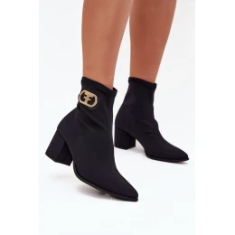 Dámské Botky Na Podpatku Se Zlatým Detalem model 21703508 Černé - Zazoo