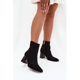 Dámské Botky Z Eko Semiše Na Podpatku Se Zipem Černé model 21704683 - Boto