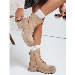 Šněrovací kozačky vyrobené z kvalitní imitace semiše jsou nezbytností při vytváření podzimně-zimních stylizací. Jsou umístěny na silné podrážce. Na vnější straně boty se nachází zip. Budou vypadat perfektně s kalhotami i šaty. Model je k dispozici ve čtyřech barvách.