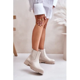 Dámské boty na plochém podpatku kožené světle béžové Lewski model 21672746 - Boto