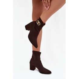 Dámské boty na podpatku se zlatým detailem Čokoládové model 21703500 - Zazoo
