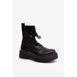 Workery Botki Damskie Ze Skarpetą Sznurowane Czarne Dedinva