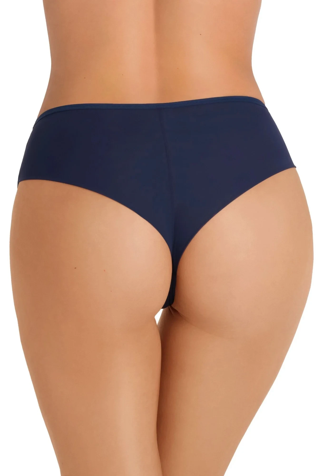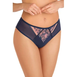 Dámske brazilky 822 Edna GORSENIA - tmavomodré - kombinácia elastického tylu a mikrovlákna - bočné diely po celej dĺžke - zadný diel z tylu s dvojitou sieťovinou Zloženie materiálu: 90% polyamid + 7% elastan + 3% polyester